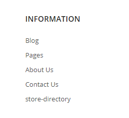 Setting menu of INFORMATION, go to Theme Admin › Storefont › Web Pages