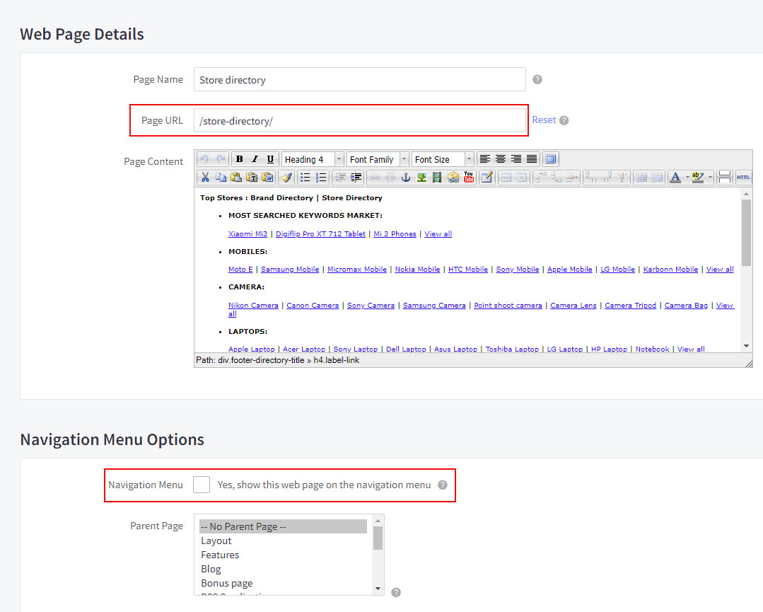 thumb - is the image brand.image - is the image content of branddescription - is description of brandurl - is the link url of brandYou can configure megamenu horizontal, web page on Main navigation. Header & Footer > Main navigation: