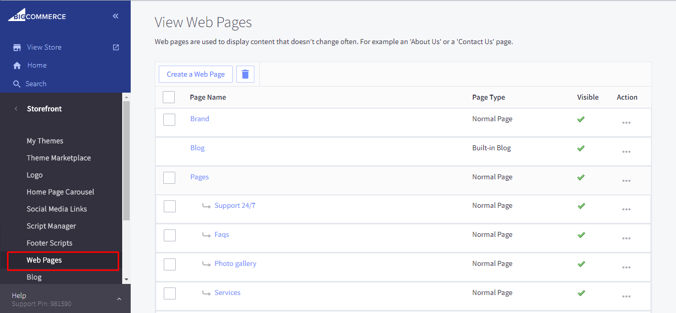 Setting menu of INFORMATION, go to Theme Admin › Storefont › Web Pages
