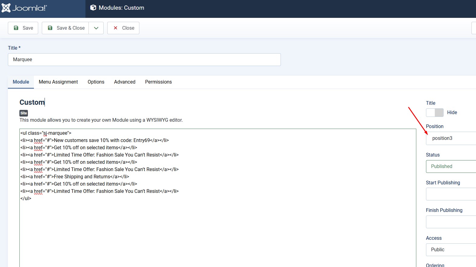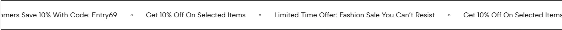 <ul class="sj-marquee"> <li><a href="#">New customers save 10% with code: Entry69</a></li> <li><a href="#">Get 10% off on selected items</a></li> <li><a href="#">Limited Time Offer: Fashion Sale You Can’t Resist</a></li> <li><a href="#">Get 10% off on selected items</a></li> <li><a href="#">Limited Time Offer: Fashion Sale You Can’t Resist</a></li> <li><a href="#">Free Shipping and Returns</a></li> <li><a href="#">Get 10% off on selected items</a></li> <li><a href="#">Limited Time Offer: Fashion Sale You Can’t Resist</a></li> </ul>