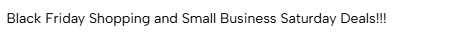 <p>Black Friday Shopping and Small Business Saturday Deals!!!</p>