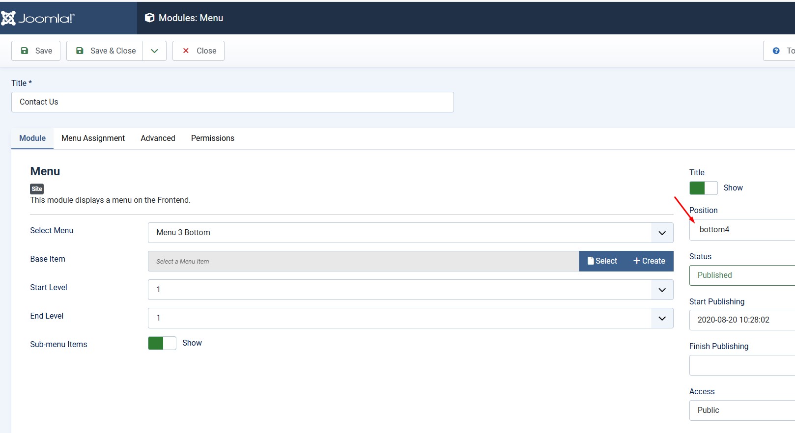 The next, go to Menus => Main menu => Click New button => Enter the Title: Contact Us. Select "SP Page builder » Page: Contact us"