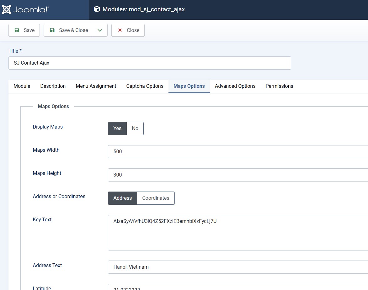 (to change the map, you can edit embed iframe in \templates\sj_entry\html\mod_sj_contact_ajax\default.php)