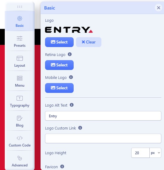 Please go to System/Templates/Site Template Styles/sj-entry => Templates Options/Basic tab => Logo