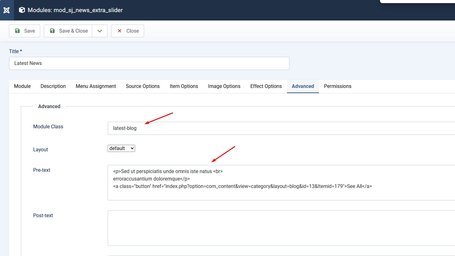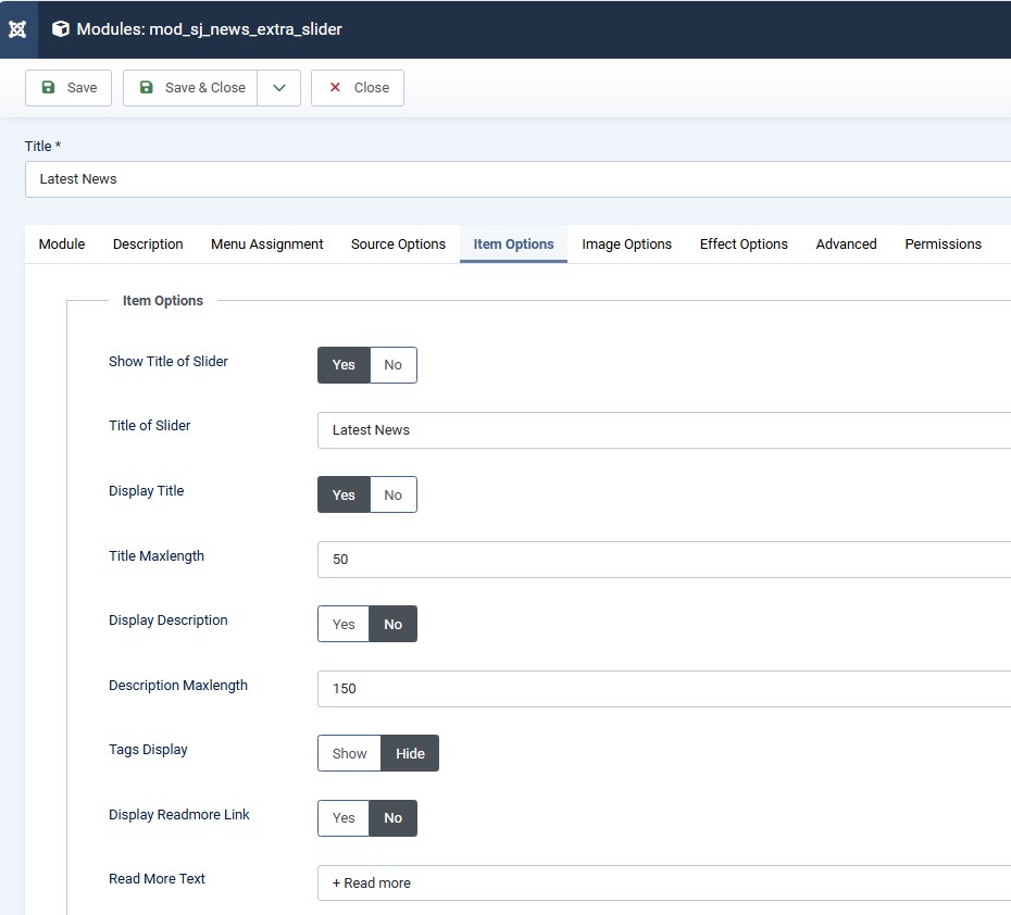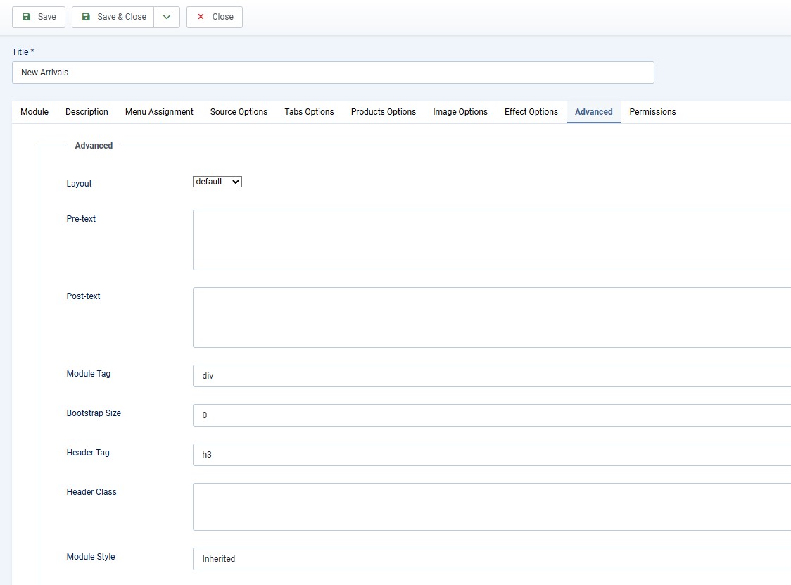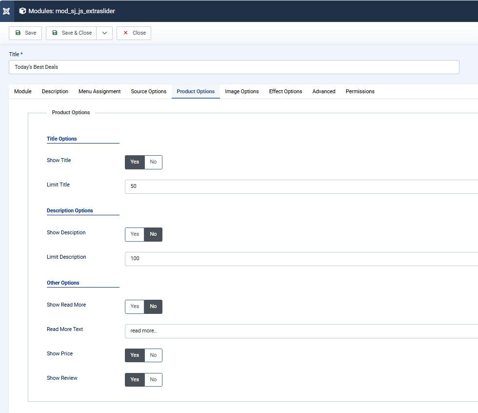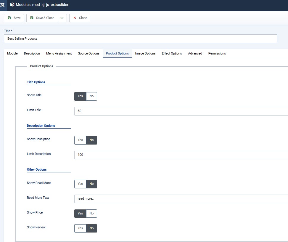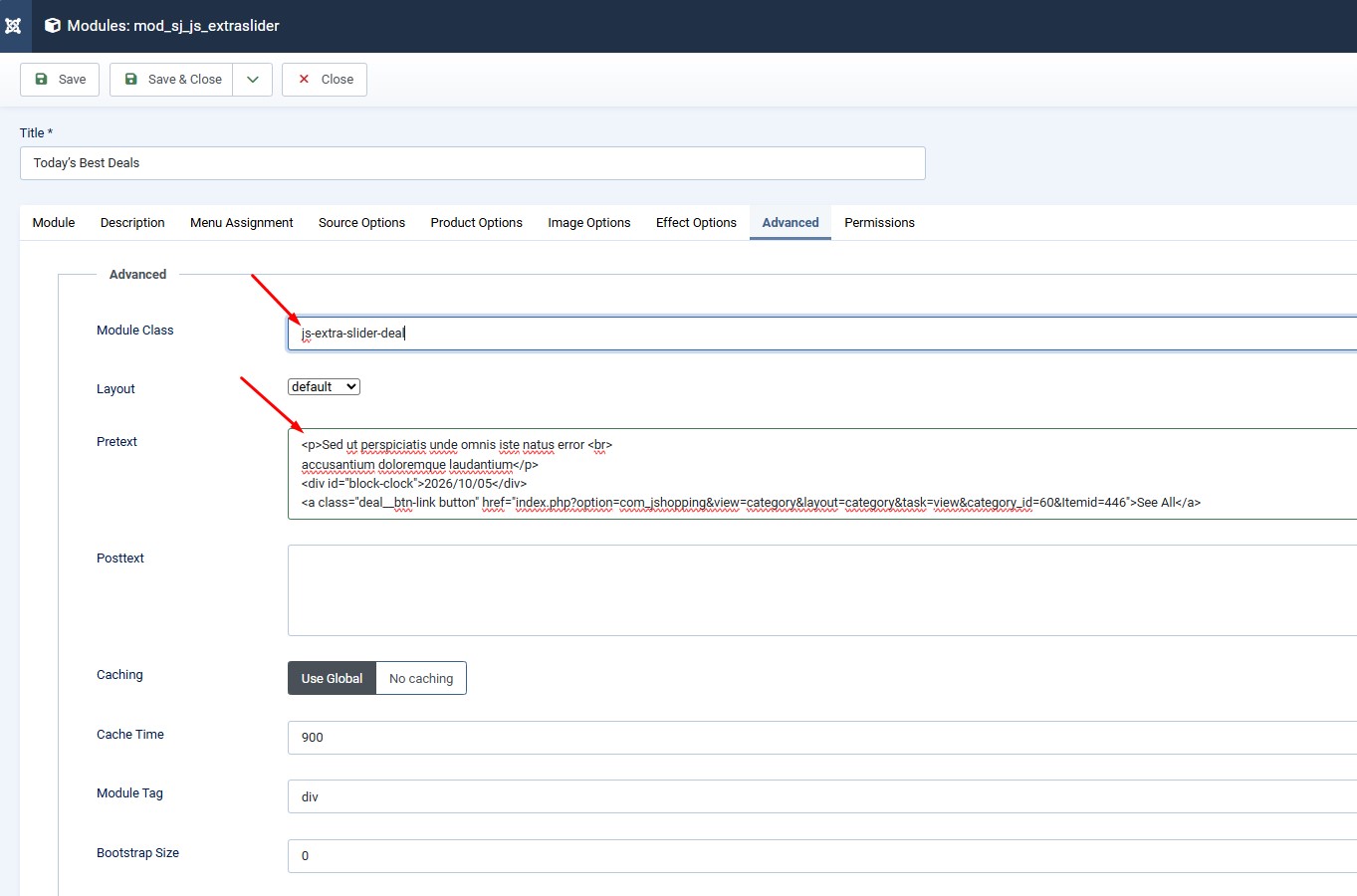 Backend Settings: Module/ Sj Mega Menu Options/ Advanced