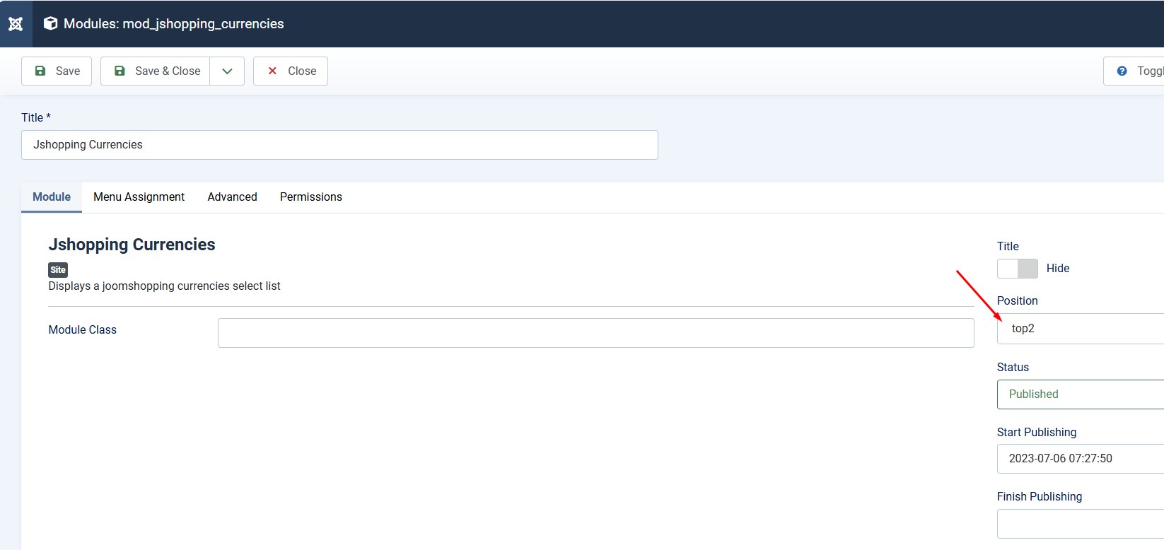 2.3. Please go to System/Manage/Site Modules =>Click New button to create a new module => Select Jshopping Currencies module.